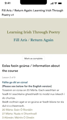 Inside the All About Irish app, you can: