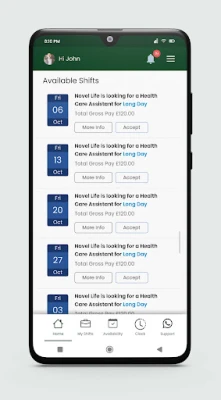 Our app helps nurses, carers, and other healthcare workers to create accounts, add their information and upload their certificates and documents. Care homes and hospitals can post shifts through the app and the shift notifications can be sent to the allocated staff so that they can view and accept the shifts. The staff can also clock in /clock out and upload timesheets or signatures as proof of their work.