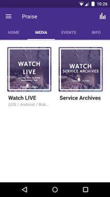- Watch live services or our service archives. - Read a daily devotion. - Find out about upcoming events. - Read our church bulletin - Stay up to date with push notifications - Share your favorite messages via Twitter, Facebook, or email - Download messages for offline listening