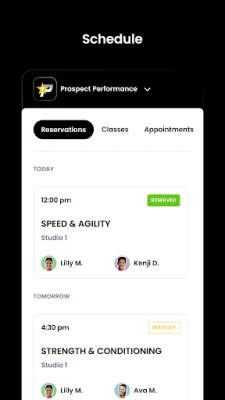 For members of Prospect Performance to reserve their place in a class, sign up for gym events, and general account management like updating headshots and credit card on file.