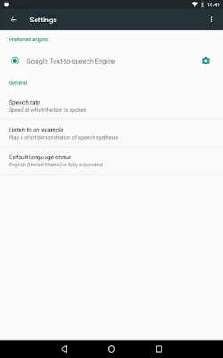 To use Google Text-to-Speech functionality on your Android device, go to Settings > Languages & Input > Text-to-Speech output. Select Speech Recognition and Synthesis from Google as your preferred engine.