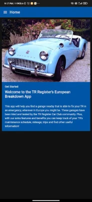 This app will help you find a garage nearby that is able to fix your TR in an emergency, wherever in Europe you might be. These garages have been tried and tested by the TR Register Car Club community.