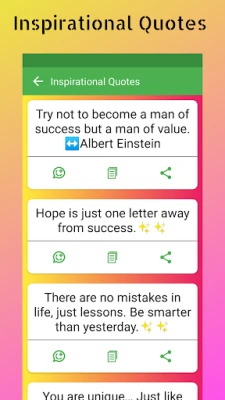 This app brings you the most compilation of encouraging quotes that will help you come ahead with all your dreams and turn them into reality. Use these quotes whenever you feel discouraged or weak.