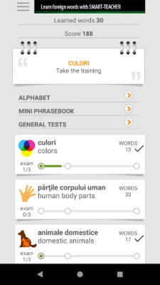 This self-teaching game helps to learn productively correct pronunciation and spelling through visual and audio support. For the correct organization of the learning process will help the function "Smart-Teacher". With this interesting and entertaining game you or your child will be able to add new words from scratch to their vocabulary through playing. The vocabulary is the foundation for good oral and writing skills. Self-training every day can improve your knowledge in practice - reading, speaking, listening and literacy. It includes the translation of words more than 40 languages.