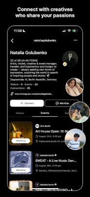 -Meet like-minded creatives through shared Visions, group chats, community events, and shared experiences.