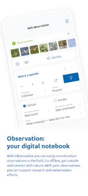 With Observation you can easily record nature observations in the field. Our online image recognition AI helps you identify the species on your images. You can choose to use the app offline anywhere in the world. Your observation data is stored on your phone first. Saved observations can be uploaded to Observation.org when online.