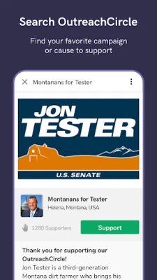 OutreachCircle makes it easy to support your favorite campaign, cause or organization. Anytime, anywhere. And because friends trust friends, OutreachCircle harnesses the power of your personal network to spread the word, friend-to-friend. Say you are supporting a candidate for senate. OutreachCircle is your home base to learn about the candidate, register to attend local events, volunteer, donate and more. You can even engage your friends through social media or sending them a personalized text or email. All from the comfort of your own home, on your own time.