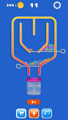 The tricky puzzle classic features unlimited levels with unlimited challenges and fun. Observe the levels carfully and plan your moves, to pull the pins in the right order. But watch out! Don't let the bombs touch the bubbles!