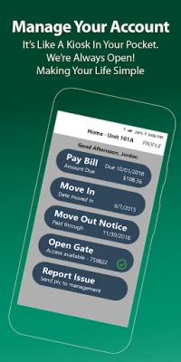 Key features - Pay bill monthly with 3 clicks. Once a customer has logged in for the first time, they can log in with fingerprint authorization, making access to their information a snap. - Certain locations allow rentals to be performed from this app. You can pay for the unit, easily sign your lease agreement and receive a gate code to obtain access all from our app. - Notify management easily that you are moving out. - Easily see what your outstanding balance is at any time. …and so much more.