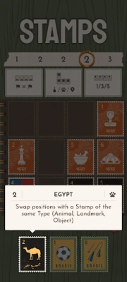 Stamps is a puzzle game where you arrange stamps in a grid to achieve goals related to their country, contents, and cost. All stamps from the same country follow the same rule when placed, influencing the board by moving, removing, or swapping with other stamps. Careful planning lets you turn those rules to your advantage, but neglect them, and they’ll disrupt your plans.