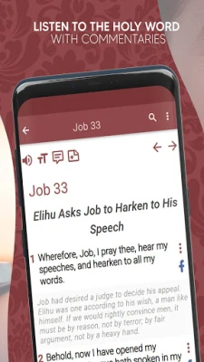 In addition to multiple functionalities, it contains the complete biblical text of the most read version of all times: King James Version (KJV) enriched with commentaries.