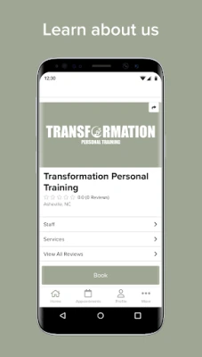 With the Transformation Personal Training mobile app, booking personalized fitness training in the Asheville, NC area is easier than ever!