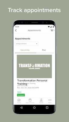 With the Transformation Personal Training app you can: • Browse fitness or weight loss menus and view all customizable options • Book personal training sessions with your favorite instructor • View our business hours, contact information & other details • Purchase packages, gift cards & merchandise • Submit payment details safely and securely