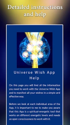 With the Universe Wish App you get a high-energy spiritual tool in your hand, which will be of great help in the manifestation of all your wishes. The app is connected to various light spiritual energies of the universe (angels, ascended masters etc.). These energies will support you full of light and love, on all levels and provide you with everything you need to make your wishes come true.