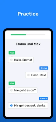 A learning process designed for you that is both easy and guided: You’ll feel like you’re learning more and more German every day. Every sentence, exercise, review, and reading has been carefully selected for you.